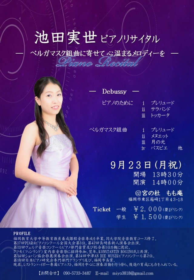 池田実世 ピアノリサイタル -- ベルガマスク組曲に寄せて心温まるメロディーを --